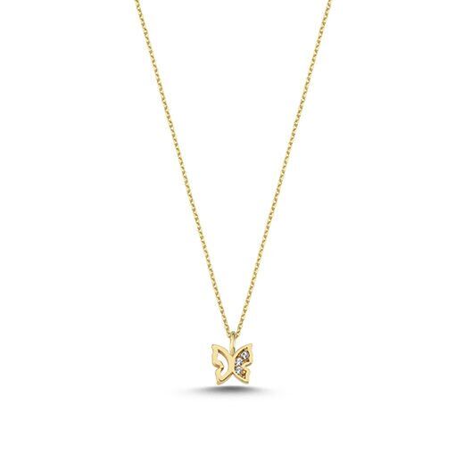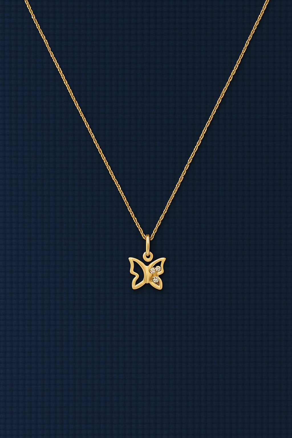 Papillon Kolye, zarafetin ve özgürlüğün simgesi olan kelebeği ince hatlarla yorumluyor. Altın rengi açık formlu tasarım, hafifliği ve sadeliği vurgularken, tek kanadındaki minik taş detayları parıltıyı sofistike bir biçimde yansıtıyor. Papillon, dönüşümün, umudun ve yeniden doğuşun sembolünü boynunuzda taşımak isteyenler için ideal bir seçim.
