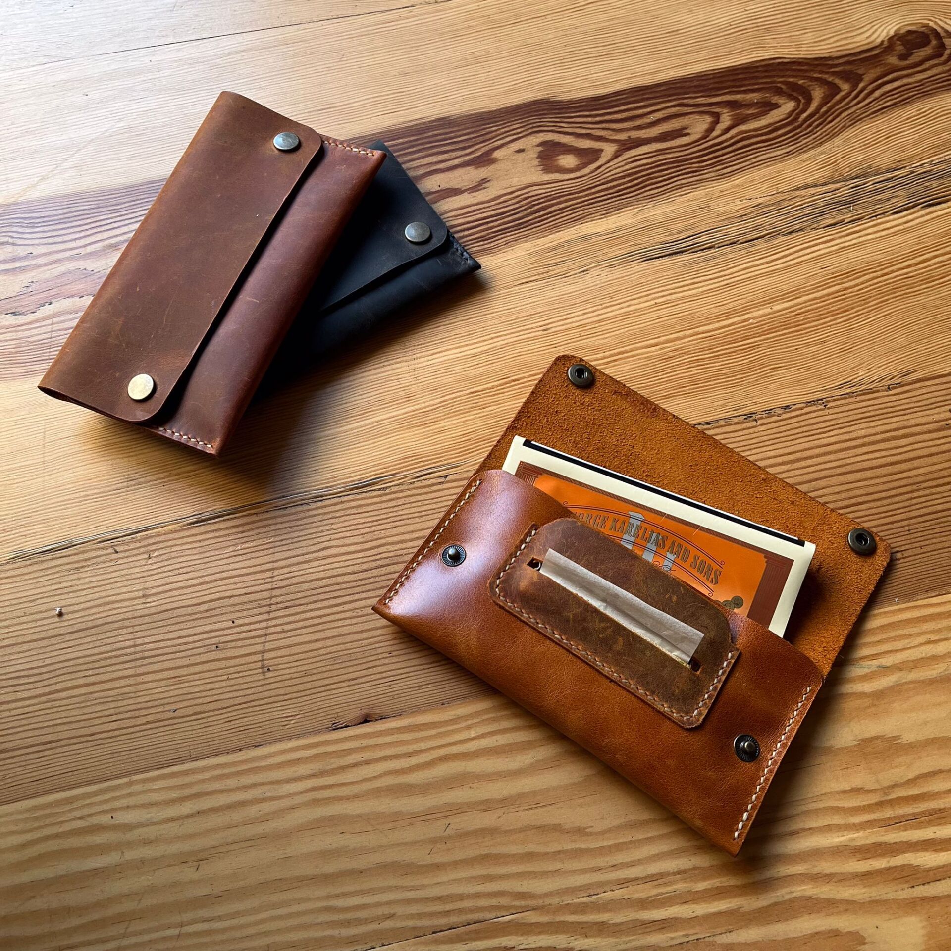 Gerçek deriden el dikişiyle hazırlanan bu tütünlük tütününüzü uzun süre taze tutar. Fonksiyonel tasarımı sayesinde kolay taşınır ve kullanım kolaylığı sunar. Klasik formuyla hem şık hem dayanıklıdır.