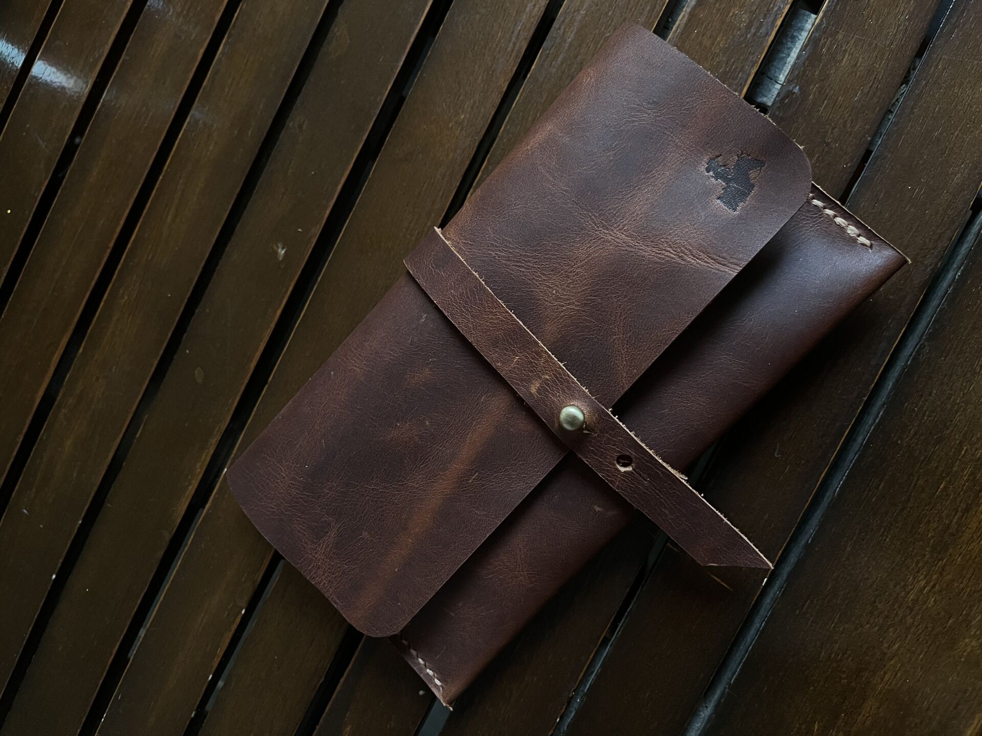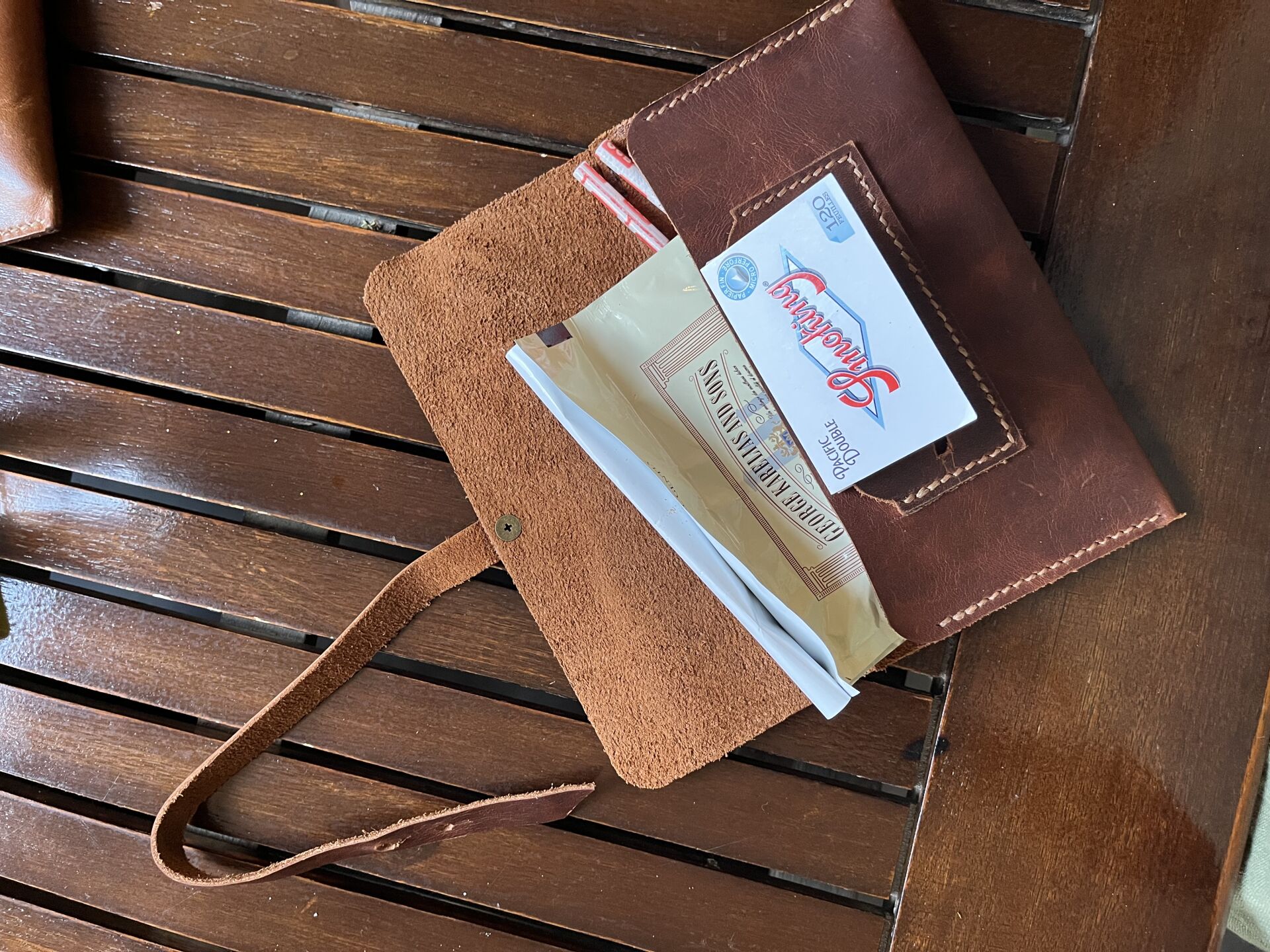 Doğal deriden el dikişiyle hazırlanan bu model tütünü, kağıdı ve filtreyi bir arada taşıyan kullanışlı tasarımıyla günlük ritüeline eşlik eder.